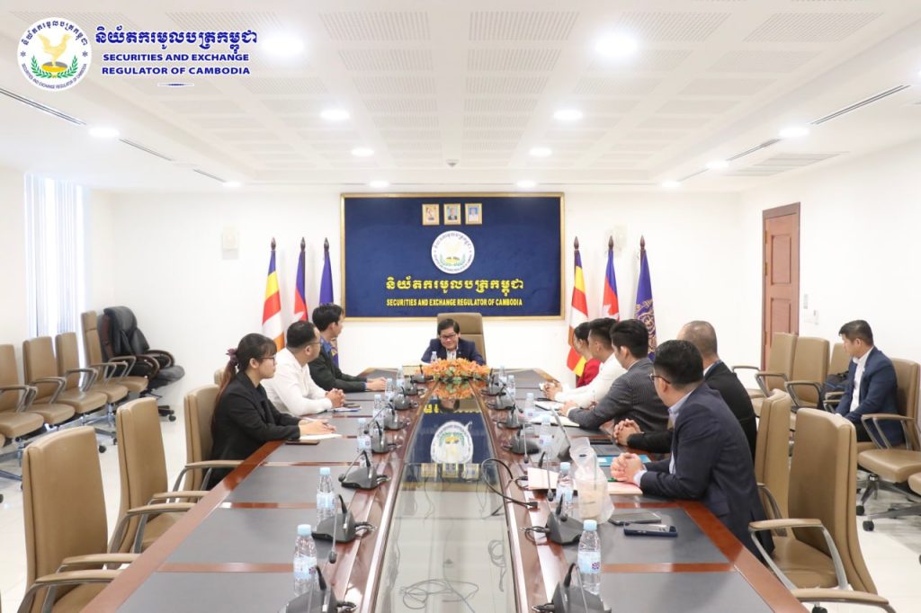 លោកស្រី ប៊ុន សុវ៉ាត់ឌី ប្រធានគណៈកម្មាធិការប្រតិបត្តិទទួលបន្ទុកជាប្រធានសមាគមឈ្មួញជើងសាឧបករណ៍និស្សន្ទនៅកម្ពុជាបានដឹកនាំអង្គគណៈកម្មាធិការប្រតិបត្តិនៃសមាគមចូលជួបប្រជុំជាមួយឯកឧត្តម ស៊ូ សុជាតិ ប្រតិភូរាជរដ្ឋាភិបាលទទួលបន្ទុកជាអគ្គនាយកនៃនិយ័តករមូលបត្រកម្ពុជា (ន.ម.ក.) និង សហការី ដើម្បីធ្វើការរាយការណ៍សមិទ្ធផលការងារដែលសម្រេចបាននៅក្នុងគ.ស.២០២៤ និងបានលើកនូវផែនការសកម្មភាពសម្រាប់គ.ស.២០២៥ របស់សមាគម ព្រមទាំងបានស្នើសុំអនុសាសន៍ដ៏ខ្ពង់ខ្ពស់របស់ ឯកឧត្តមប្រតិភូទៀតផង។ ក្នុងកិច្ចប្រជុំបន្ទាប់ពីតំណាងសមាគមបានរាយការណ៍ អំពីសមិទ្ធផលការងារដែលសម្រេចបាននៅក្នុងគ.ស.២០២៤ និងបានលើកនូវផែនការសកម្មភាពសម្រាប់គ.ស.២០២៥ សមាគមក៏បានទទួលអនុសាសន៍ដ៏ខ្ពង់ខ្ពស់ពីឯកឧត្តមប្រតិភូ បន្ថែមទៅលើសមិទ្ធផលនៃសកម្មភាពការងារដែលបានអនុវត្តរួចនៅក្នុងគ.ស.២០២៤ ក៏ដូចជាទិសដៅផែនការសកម្មភាពសម្រាប់គ.ស.២០២៥ របស់សមាគមផងដែរ។ កិច្ចប្រជុំនេះ បានប្រព្រឹត្តទៅដោយរលូន និងប្រកបដោយផ្លែផ្កាខ្ពស់។